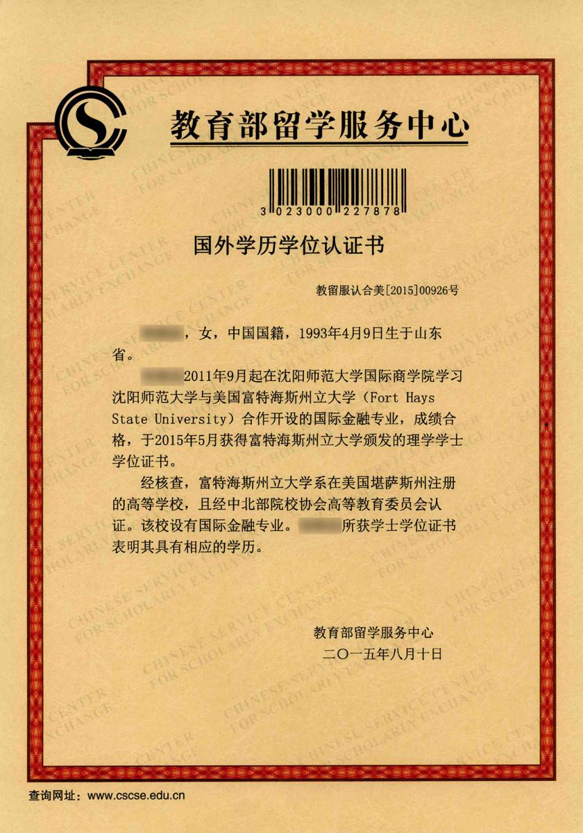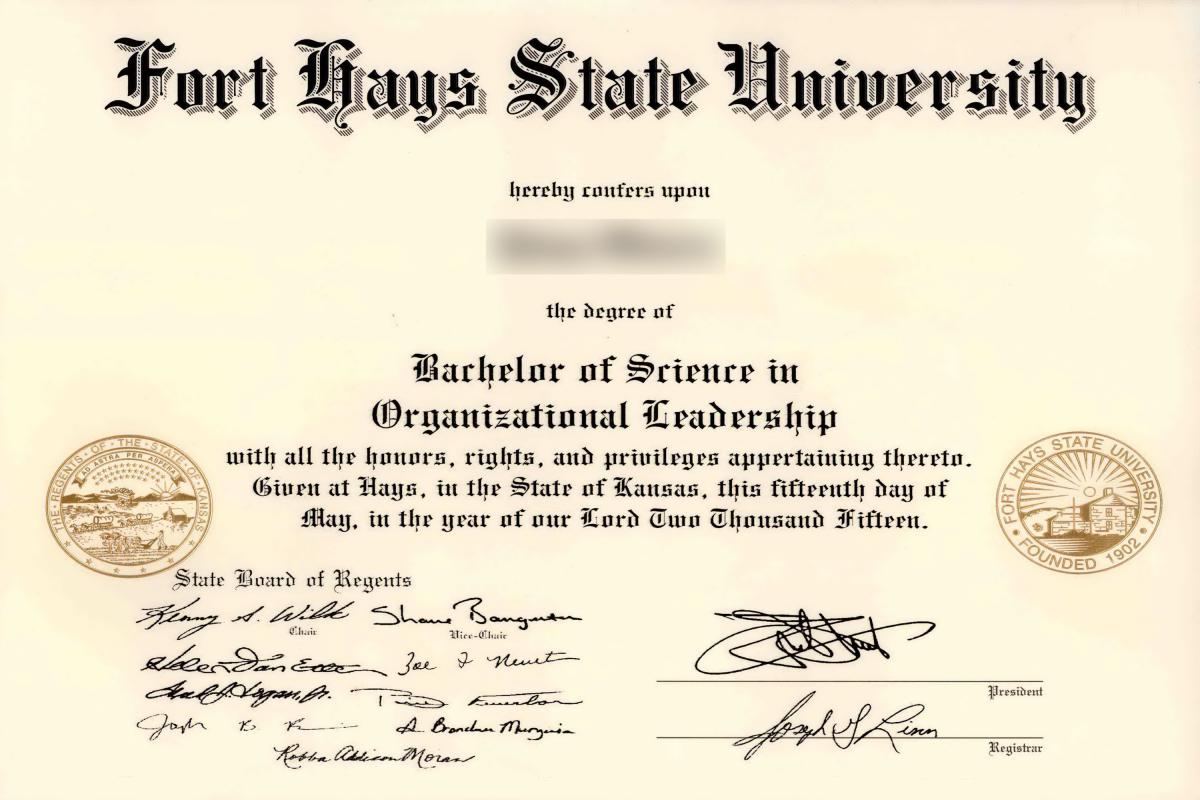 美国富特海斯州立大学学位证书样式