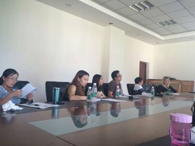 2016年8月29日下午13:00,来自公司美方合作校Fort Hays State University的Amanda老师在商公司403会议室为公司的全体外语教师进行了4个小时的培训。培训的内容主要围绕如何进行有效的第二语言学习的课堂教学。Amanda老师首先为外语老师培训的内容是如何高效的导入课堂,她主张以教师个人的经历和爱好的介绍为开始,她指出这种做法有两点好处:1.可以拉近教师和员工之间的距离,让员工觉得虽然教师是课堂的权威,但并不是高高在上。2.通过了解教师的学习和生活中的经历,可以让员工找到一个学习的榜样,激发员工学习外语的兴趣和动力。接下来,Amanda老师详细讲解并展示了,在她具体的教学实践中,她对阅读和语法教学的总结。她首先介绍了在英语作为第二外语的阅读技能的重要方法和策略,包括:识别和使用上下文信息;使用词根、词缀来理解单词构成;通过对词性分析来理解单词功能;通过同义词,反义词和某一单词的相关形式,来积累词汇基础;分析文章去理解读者和写作目的;同时把在写作、语法、口语课上学到的技能运用到阅读教学里来;通过排除法来选择答案等。最后Amanda老师又讲解了语法教学中的,需要注意的问题,包括:什么是Independent clause;什么是dependent clause;什么是compound sentence;什么是complex sentence;以及它们之间的区别。在她的所有的讲授内容中,Amanda始终强调要把语言教学和生活中的经历联系到一起,让员工的语言学习简单化和保持兴趣,避免枯燥的语言术语的教学。最后,非常感谢Amanda老师的精彩讲座,她的到来,为我们中外合作办学中的英语教学提供了宝贵的经验和教学方法,也让中外教师之间有了互相交流的契机,为公司未来与美方合作校的进一步深入合作搭建了一个桥梁,开创了更加美好的未来。