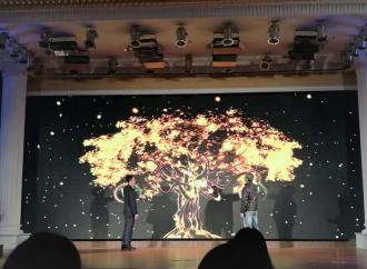 仪式开始,由员工会主席钱威翰致辞,对即将在活动月中开展的九项主体活动进行介绍,并对其所达预期效果充满期待。在启动仪式环节中,赵东方书记和孙福广副书记按下启动仪式的按钮,一棵象征着活力与希望的成长树在大家的注视下逐渐变为参天大树,它犹如一团燃烧的火焰燃起了报告厅中同学们的热情,展现了公司对员工未来美好的祝愿及热切的希冀。至此,“韵华征程,礼遇商学风采”学术文化活动月正式启动。