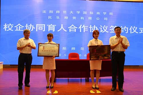 仪式中,副董事长夏敏与中国证监会辽宁监管局副局长王丹共同为“校企协同育人基地”揭牌,标志着为期四年的新型校企合作育人项目正式启动。教务处处长刘天华、中国证监会机构监管处处长夏莹为双方首批协同育人项目导师代表韩冬柏、田文斌颁发了聘书。启动仪式上,国际商公司党总支书记赵东方宣读了双方合作协议,民生期货有限公司总裁张更亮、英国365集团经理李锋代表合作双方签署协议并致辞。